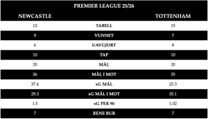 Hos Tottenham er situasjonen enda mer kritisk. Thomas Frank må klare seg uten en lang rekke nøkkelspillere. James Maddison, Rodrigo Bentancur, Mohammed Kudus, Ben Davies, Lucas Bergvall, Destiny Udogie, Pedro Porro, Richarlison, Dejan Kulusevski og Kevin Danso er alle ute med skader. I tillegg er Cristian Romero suspendert etter det røde kortet mot Manchester United.